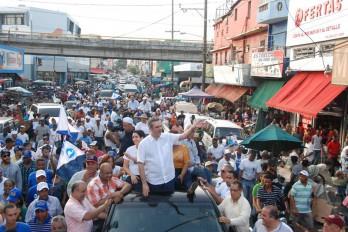 Durante una marcha caravana en la que estuvo acompañado de los principales dirigentes políticos del PRM, además de los integrantes de la llamada "Convergencia", en los que estuvo el líder del Frente Amplio, Fidel Santana, el candidato presidencial llamó al pueblo a decirle "no a la reelección de la corrupción".
