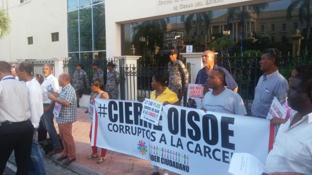 SANTO DOMINGO. El movimiento Poder Ciudadano sorprendió hoy martes colocándose con su cadena humana frente a las Oficinas de Ingenieros Supervisores de Obras del Estado (OISOE), ya que la protesta se convoca cada miércoles.