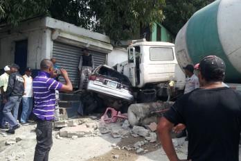 Según versiones, el camión de la empresa La Concretera, conducido por Matías Cruz Antigua, perdió los frenos al tratar de evitar chocar a un hombre, identificado como Antonio Tejada, que en ese momento estaba cambiando una goma en el paseo de la autopista.