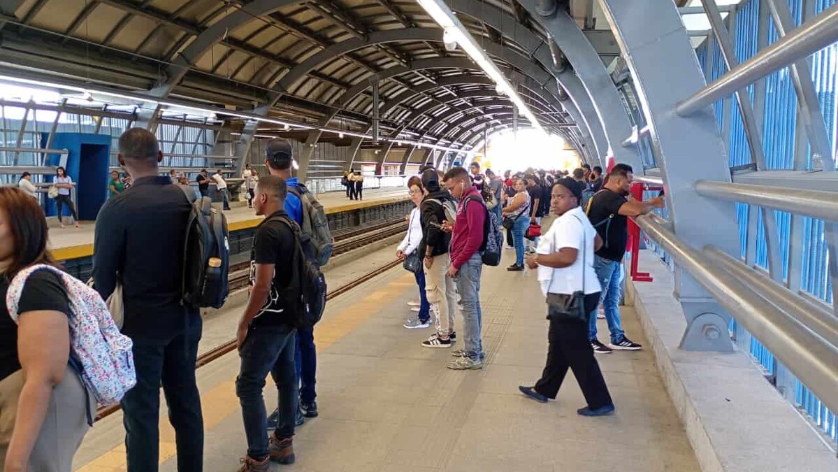 Este lunes, los pasajeros aún debían realizar un primer transbordo en la estación Franklin Mieses Burgos, ubicada en la avenida Monumental, donde aseguran esperar entre 15 y 20 minutos para abordar el tren.