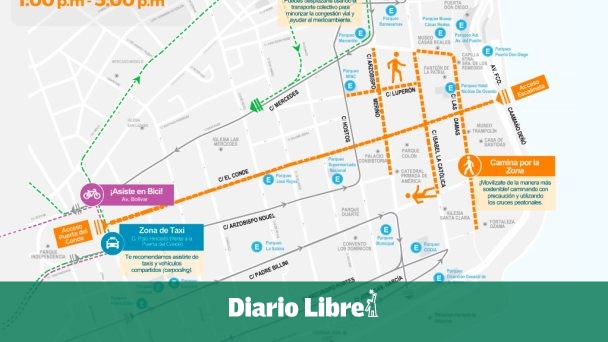 Con el fin de fortalecer el desplazamiento peatonal en la Zona Colonial dentro del Plan de Movilidad Urbana Sostenible, el Instituto Nacional de Tránsito y Transporte Terrestre (INTRANT), la Dirección General de Seguridad de Tránsito y Transporte Terrestre (DIGESETT), Ministerio de Turismo (MITUR), la Alcaldía del Distrito Nacional en coordinación con la junta de vecinos y comerciantes, informan que el polígono catedral de ese centro histórico será peatonal este fin de semana, indicando la disponibilidad de parqueos y rutas alternas para sus visitantes.