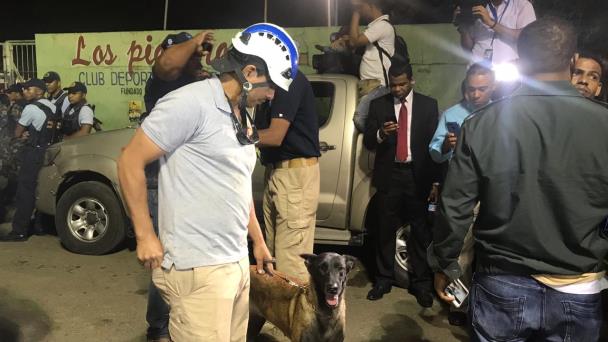 Molina aclara que el grupo de ocho rescatistas enviados hoy por el Ayuntamiento de San Juan, Puerto Rico, no trajo consigo ningún equipo canino. Dice que los animales que están en las labores pertenecen a diferentes instituciones de rescate del país.