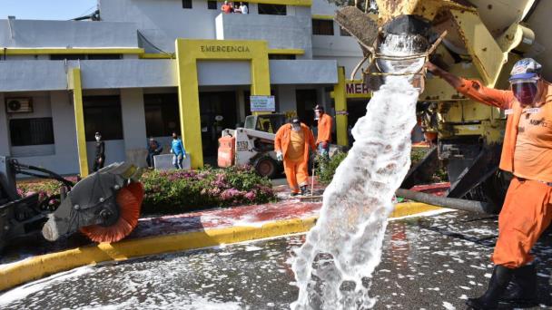 El Ministerio de Obras Públicas y Comunicaciones (MOPC), la Corporación de Acueducto y Alcantarillado de Santo Domingo (CAASD), y empresas constructoras y hormigoneras intervinieron este lunes las áreas de emergencias de 14 centros de salud del Distrito Nacional con la jornada de limpieza y desinfección en la lucha contra la propagación del COVID-19.