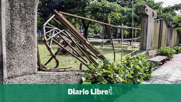 Diario Libre ha recorrido tanto la parte externa como interna del parque y pudo comprobar que algunas de las verjas hexagonales carecen de las barras originales y en su lugar los huecos han sido tapados con palos, alambres y otros metales.