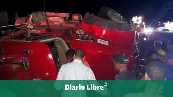 De acuerdo con testigos, el camión viajaba en dirección sur-norte y alegadamente una yipeta blanca hizo un rebase temerario, por lo que el conductor de la volqueta hizo un giro, quedando atravesada en la carretera.