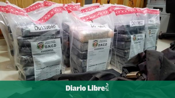“La sustancia estaba distribuida en cuatro bultos de color negro, uno de ellos contenía 27 paquetes, otro 26, uno 25 y el último unos 21”, detalla una nota de prensa de la DNCD.