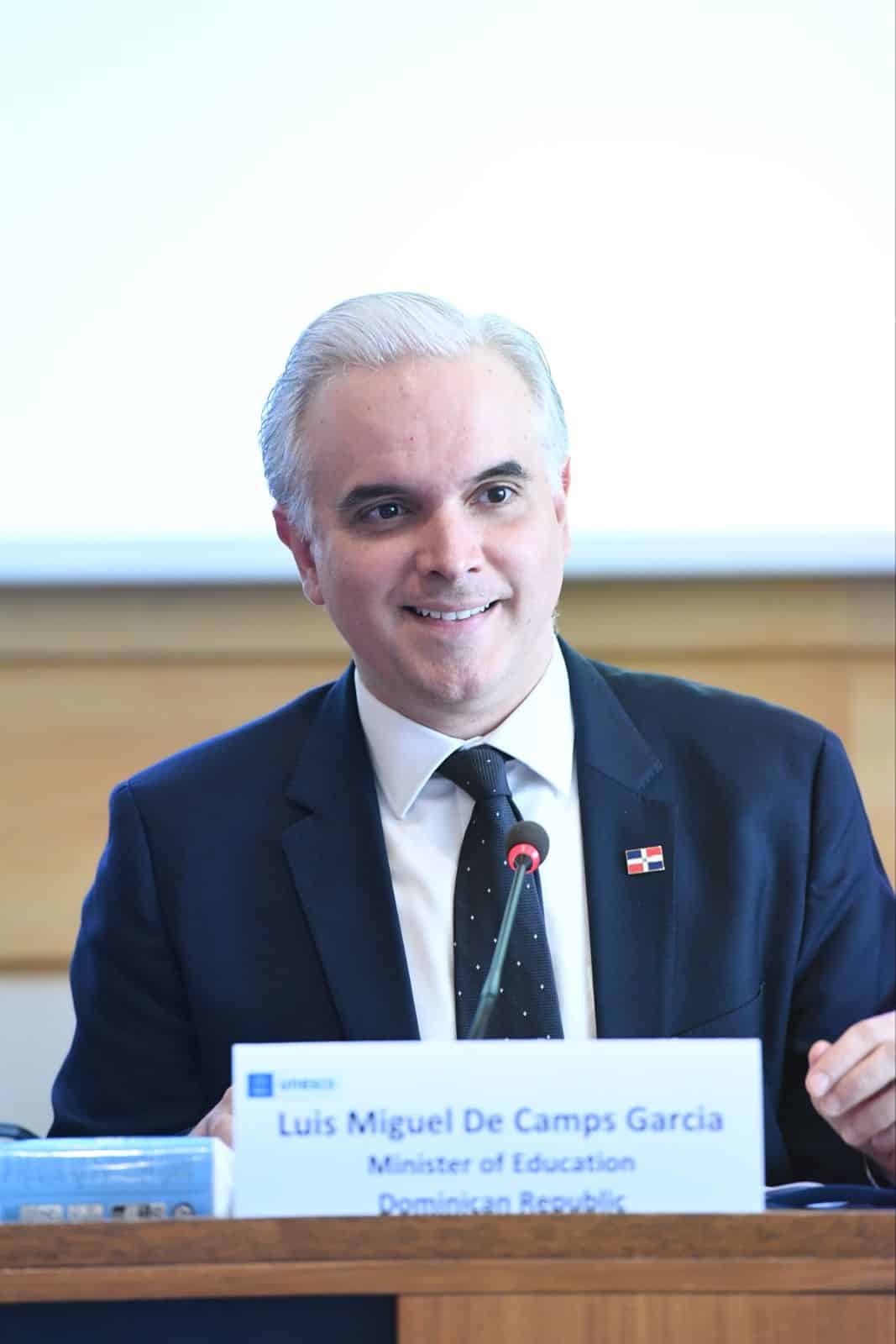 El ministro de Educación, Luis Miguel De Camps, destacó la reciente aprobación de la Estrategia Nacional de Competencias Digitales como un paso clave para fortalecer el sistema educativo preuniversitario dominicano, durante su participación en un panel de alto nivel celebrado en la sede de la Unesco, en el marco de la reunión anual de la Coalición Mundial por la Educación.