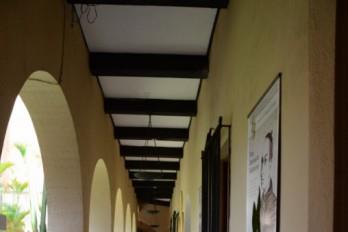 Las grandes galerías claustrales del convento, se abren hacia el patio, usualmente a través de arcos ojivales o de medio punto, separados por columnas y vigas que sostienen el entrepiso y la cubierta del segundo nivel, que es siempre inclinada hacia el patio para canalizar las aguas de lluvia y enviarlas al pozo o aljibe central.