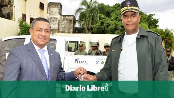 SANTO DOMINGO. El director general del Instituto Dominicano de Aviación Civil (IDAC) Alejandro Herrera entrega las llaves de una camioneta doble cabina al general Valerio Antonio García Reyes, director general del Servicio Nacional de Protección Ambiental (SENPA) del Ministerio de Medio Ambiente y Recursos Naturales, para ser utilizada en las operaciones que ese organismo lleva a cabo para salvaguardar los recursos naturales locales.