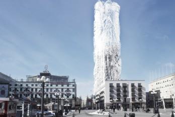 El proyecto "Strawscraper" consiste básicamente en incorporar al Söder Torn, uno de los edificios residenciales más altos de Estocolmo, situado en isla de Södermalm, una extensión estructural y una nueva cubierta compuesta por una gran cantidad de "pelos" o filamentos piezoeléctricos para generar elecetricidad cuando los agita el viento.