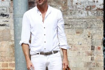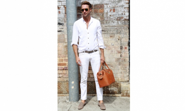 El blanco siempre será el color de verano y usarlo en un total look siempre es una buena idea. Puede ser relajado, con unos jeans y una camiseta, o como lo lleva este estilista australiano con una camisa blanca informal.