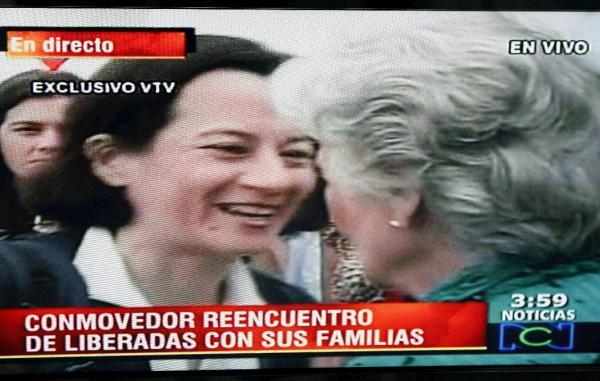 Clara González de Rojas, madre de la ex candidata a la vicepresidencia colombiana Clara Rojas, dos hijas y una nieta de la ex congresista González de Perdomo, fueron las primeras familiares en abrazar a las recién liberadas.