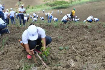 Empleados del Popular siembran 5,260 caobas en San José de las Matas