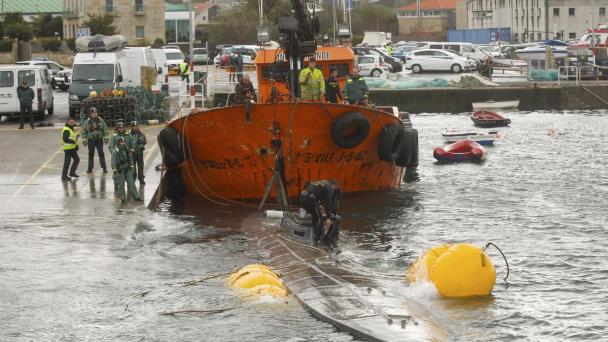 Las autoridades prevén usar una grúa para levantar el navío de 20 metros (65 pies) de eslora y bajarlo en el Puerto de Aldán para poder inspeccionarlo mejor, informó un funcionario de Pontevedra.