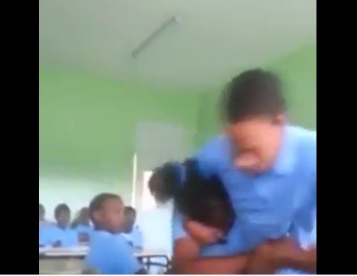 Un video que se hizo viral este jueves muestra la golpiza que le dio un estudiante a una compañera, dentro del aula, en liceo de Bayaguana. El suceso ha generado gran indignación y será investigado por el Ministerio de Educación.