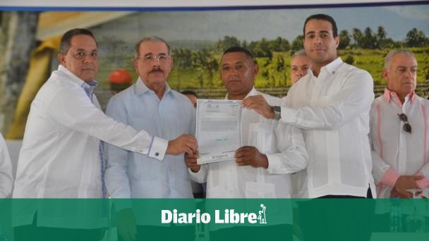 SAN JOSÉ DE OCOA. El presidente Danilo Medina entregó 302 títulos definitivos a productores de Rancho Arriba y dueños de solares y parcelas de Los Martínez y Las Caobas que abarcan una superficie de 7 mil 206 tareas de tierras.
