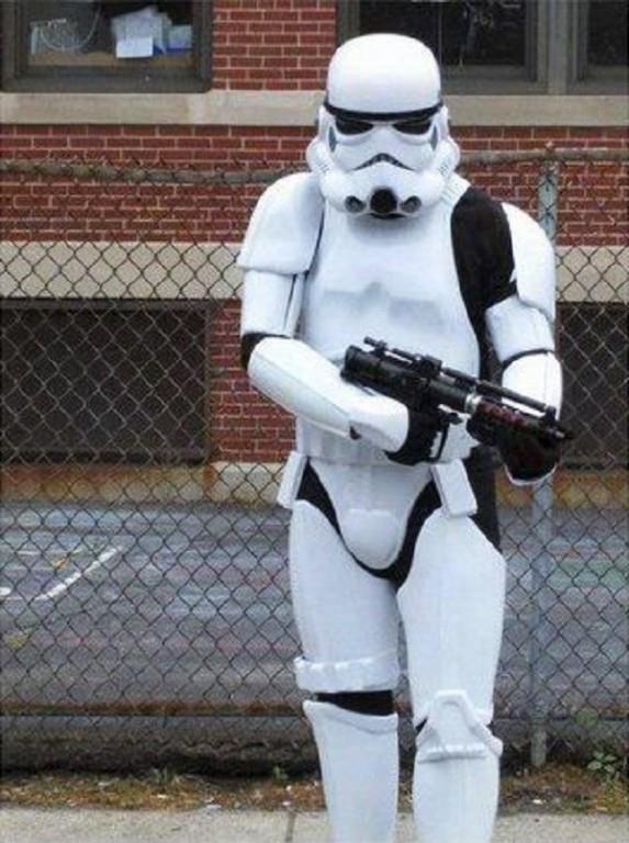 LYNN, MASSACHUSETTS. Un hombre de Massachusetts enfrenta cargos luego de que fuera visto disfrazado como un soldado storm trooper de "Star Wars", con todo y pistola falsa, cerca de una escuela primaria de la ciudad.
