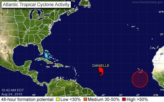 "Danielle" es el segundo huracán de la temporada y no amenaza a ningún territorio ni población al encontrarse en mitad del Atlántico y en una trayectoria oeste-noroeste que lo aleja del Caribe y de la costa este de EE.UU.