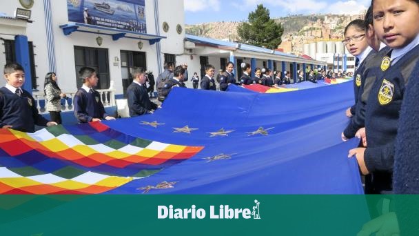 Alumnos de la Unidad Educativa Héroes del Pacífico en La Paz entregaron a la Armada boliviana los primeros 70 metros de la bandera, con la que el próximo 10 de marzo Bolivia espera batir el récord.