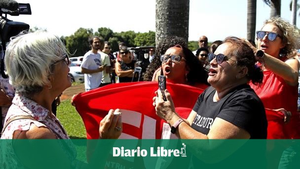Cerca de 20 militares brasileños patrullaban las afueras del edificio, donde simpatizantes brasileños de ambos lados del espectro político discutían.