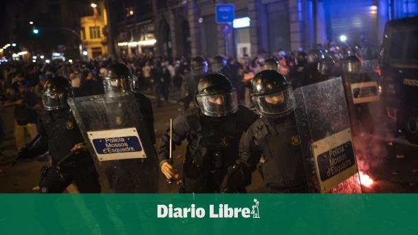 Cuando los inconformes cambiaron las pelotas por piedras y botellas, la policía nacional y refuerzos de la policía regional de Cataluña se les abalanzaron con porras y les dispararon balas de goma. Después de un momento caótico, los agentes lograron ampliar un perímetro mientras los manifestantes incendiaron contenedores de basura a mitad de las calles.