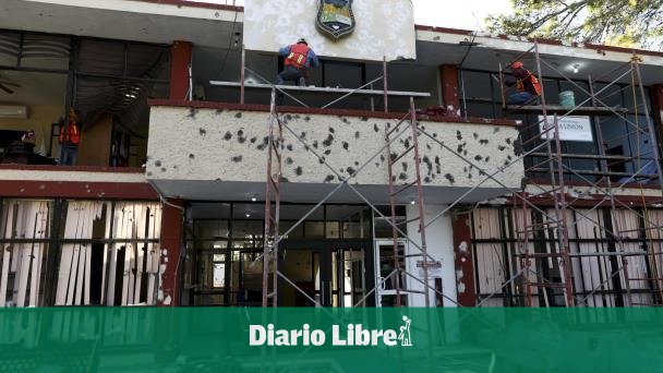 A un lado de la alcaldía, una ambulancia y una camioneta de la policía quedaron acribilladas. La camioneta se incendió.