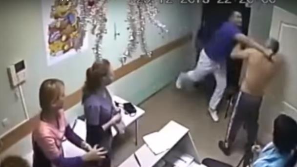 En las imágenes se puede ver cómo el doctor noquea mortalmente al paciente, que cae de manera fulminante al suelo, y después propina una paliza a su acompañante.