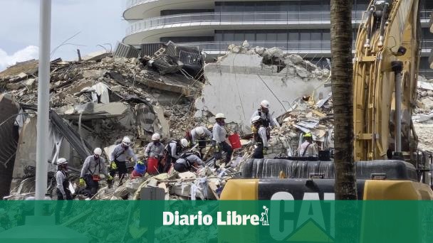 Los equipos, que incluyen unos 130 bomberos, examinan la pila de escombros desde arriba y desde abajo en busca de cualquier señal de vida en lo que fue un ala de las torres Champlain Sur en Surfside, Florida.