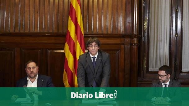 Bajo los flashes de las cámaras, Puigdemont y los miembros de su gabinete firmaron todos el decreto, en un gesto de unidad frente a las amenazas de acciones legales contra los convocantes de un referéndum considerado ilegal por la justicia española.