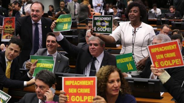 El anuncio del resultado fue recibido con una ovación por los diputados opositores, que agitaron banderas brasileñas, gritaron “fuera Dilma” y entonaron el himno nacional en medio de un coro oficialista que los acusaba de “golpistas”.