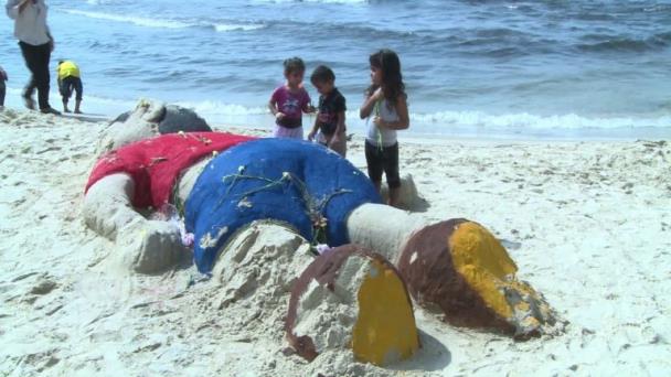 VIDEO | En una playa de Gaza una estatua de arena recuerda al niño sirio ahogado