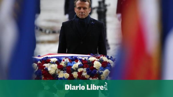 En Francia, el presidente Emmanuel Macron conmemoró el Día de Armisticio, visitando la Tumba del Soldado Desconocido debajo del Arco de Triunfo, ante una enorme bandera francesa.