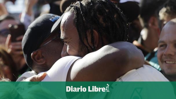 Una vez que se detuvo, Hamilton se paró encima de su auto y se llevó las manos a la cabeza, antes de arroparse en la bandera británica. Minutos después, Sebastian Vettel, el rival de Ferrari, le dio un apretón de manos y un abrazo.