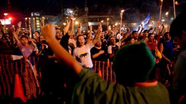El movimiento autodenominado como ‘Indignados’ se formó luego que la fiscalía descubrió el saqueo de unos 330 millones de dólares del Seguro Social, y escogieron las antorchas como símbolo de la lucha contra la impunidad y la corrupción.
