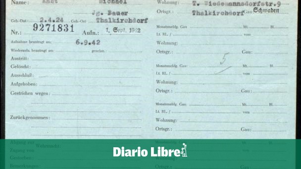 Funcionarios alemanes confirmaron esta semana que una cédula de identidad en el Archivo Federal de Alemania revela que Michael Kast, de 18 años, se afilió al Partido Nacionalsocialista de los Obreros Alemanes (NSDAP por sus siglas en alemán) el 1 de septiembre de 1942, en el apogeo de la guerra de Hitler contra la Unión Soviética.