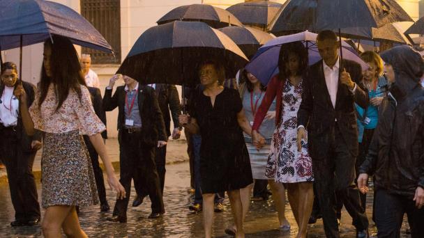 Lluvia, flores y un “¿qué bolá?” marcan las primeras horas de Obama en Cuba