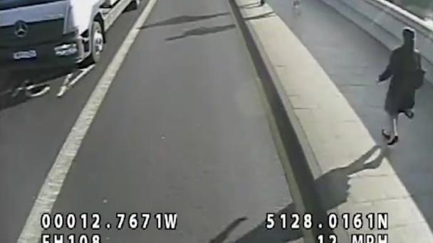 La policía difundió imágenes de cámaras de vigilancia del incidente del 5 de mayo en el puente Putney. En ellas aparece un corredor con pantalones cortos negros y camiseta gris mientras empuja a la peatona, que cae delante de un autobús de dos pisos. El conductor gira bruscamente y evita arrollarla por poco.