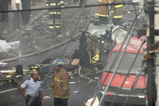 La policía acordonó la zona conocida como Calidonia. Los bomberos perforaban con mazos parte de las paredes del edificio sobre el cual cayó el helicóptero en busca de otras víctimas atrapadas.