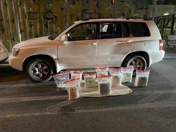 Las autoridades, de acuerdo informes de inteligencia, detuvieron en el puesto Interagencial de los Pilones, municipio de Baní, al conductor de una yipeta, Highlander-Limited, blanca, placa G-260244, donde en la parte delantera (bonete) y el baúl, se encontraron escondidas nueve pacas del vegetal, con un peso de 81.12 libras de marihuana.