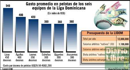 La LIDOM tiene la responsabilidad de manejar el aspecto deportivo del torneo. Lo suyo no son los negocios, aseguró Rodríguez, que lleva 18 años perteneciendo al organismo, aunque dentro de la Liga se conoce bien el tema. Tanto que Rodríguez sabe de memoria cuántos bates y pelotas compra cada equipo durante la temporada y el costo de esos útiles. En el algún momento, el reglamento de LIDOM, un libro que Rodríguez y los demás miembros de la Liga guardan con celo, consagró el salario máximo que debían percibir los peloteros y lo cifró en unos RD$75 mil. Rodríguez admitió entre risas que pretender controlar el mercado era imposible. Los salarios en el circuito dominicano tienen un amplio rango, que va de los RD$10 mil a los RD$300 mil mensuales dependiendo de la categoría del jugador.