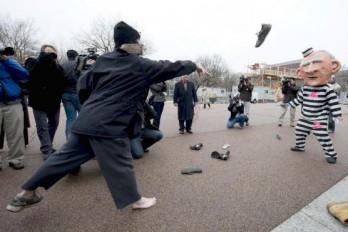 Lanzan zapatos a un muñeco de Bush frente a la Casa Blanca