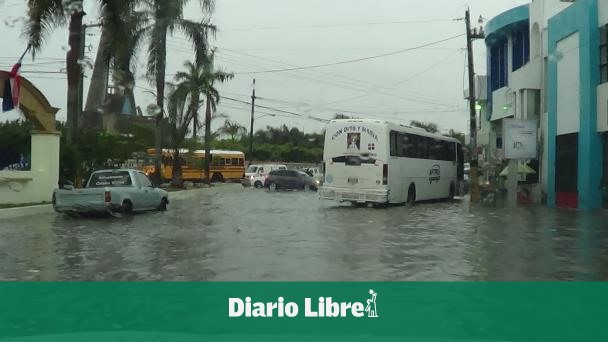 Lluvias inundan alrededores plaza Restauración en Higüey