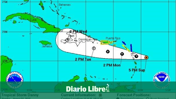 Ernesto Rodríguez, meteorólogo de la Oficina Nacional de Meteorología de Puerto Rico, adelantó que se espera que Danny se degrade en depresión tropical a su paso el lunes por el sur de las Islas Vírgenes estadounidenses, donde arrojará lluvias de entre cinco y 10 centímetros.