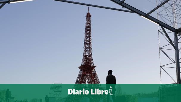 La gente camina frente a una reproducción de la torre Eiffel en la Conferencia sobre Cambio Climático de las Naciones Unidas en Le Bourget, en las afueras de París ( (AP PHOTO / LAURENT CIPRIANI))