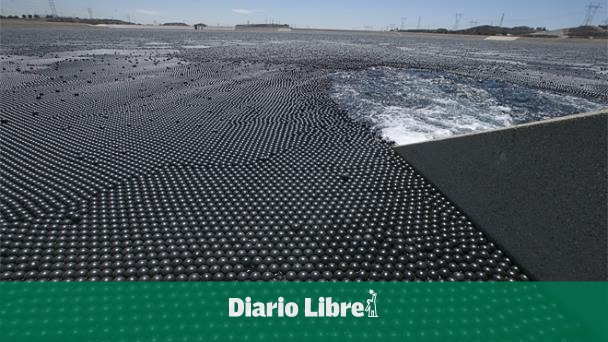 Las bolas crean una suerte de mar negro de bolas sobre el agua del reservorio.