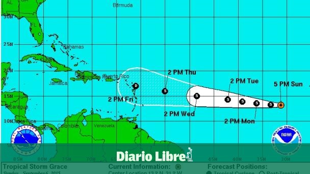 SANTO DOMINGO. El Centro Nacional de Huracanes reporta en su informe de la 5:00pm de este domingo que la tormenta Grace “se fortalece un poco” mientras continúa su avance hacia el oeste, aunque no representa una amenaza para tierra.