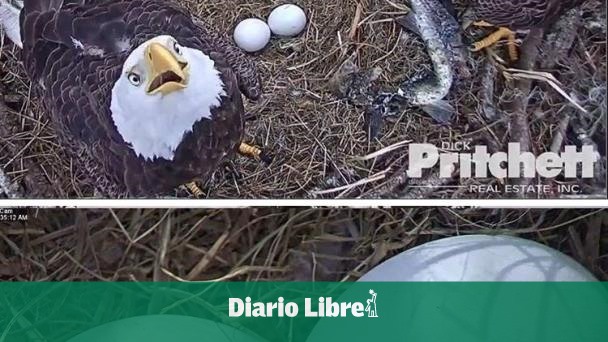 Hay momentos que el águila de turno se para, observa los huevos, los tapa por los lados con ramas y hojas, y se sienta de nuevo encima de ellos para continuar con su trabajo de mantenerlos calientes, en su nido de Fort Myers, en la costa este de Florida. Es la quinta vez que hay seguimiento en vivo de este nido, que construyeron estas rapaces en una rama a unos 18 metros del suelo, por cámaras instaladas por la compañía de bienes raíces Dick Pritchett.