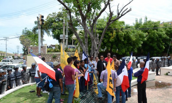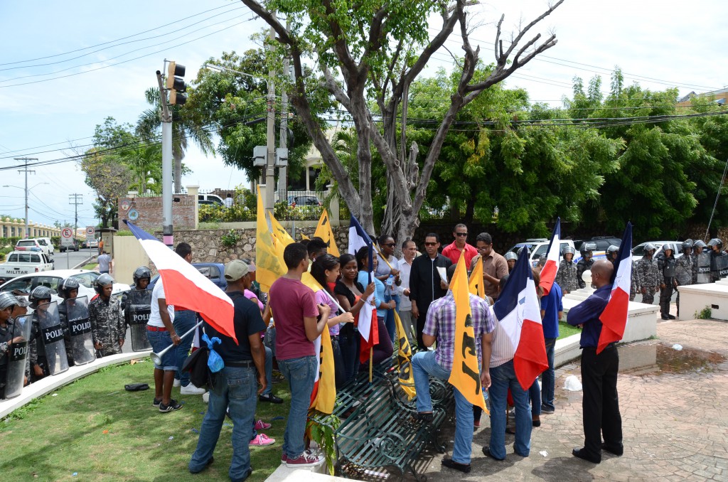 Procedentes de la Universidad Autónoma de Santo Domingo (UASD), con banderas dominicanas y alusivas al grupo estudiantil MIEL, los estudiantes fueron vestidos de verde y se mantuvieron allí desde las 10: 00 de la mañana hasta las 2:00 de la tarde.