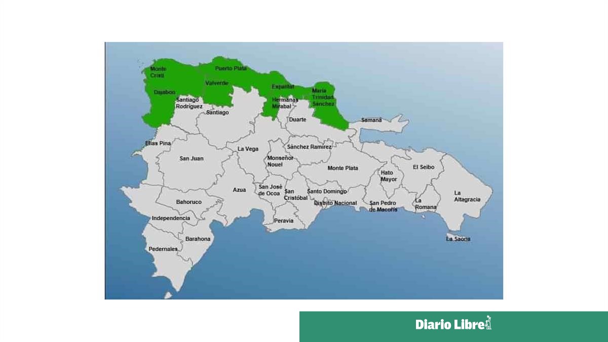 El Centro de Operaciones de Emergencias (COE) emitió este sábado alerta verde para las provincias Montecristi, Puerto Plata, Dajabón, María Trinidad Sánchez, Espaillat y Valverde ante posibles crecidas de ríos, arroyos y cañadas.
