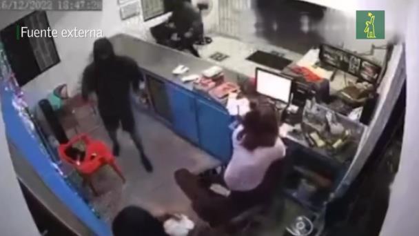 Circula un video en redes sociales que, en distintos ángulos, muestra el momento en que dos hombres encapuchados y armados irrumpen en una lavandería en Bonao, provincia Monseñor Nouel.